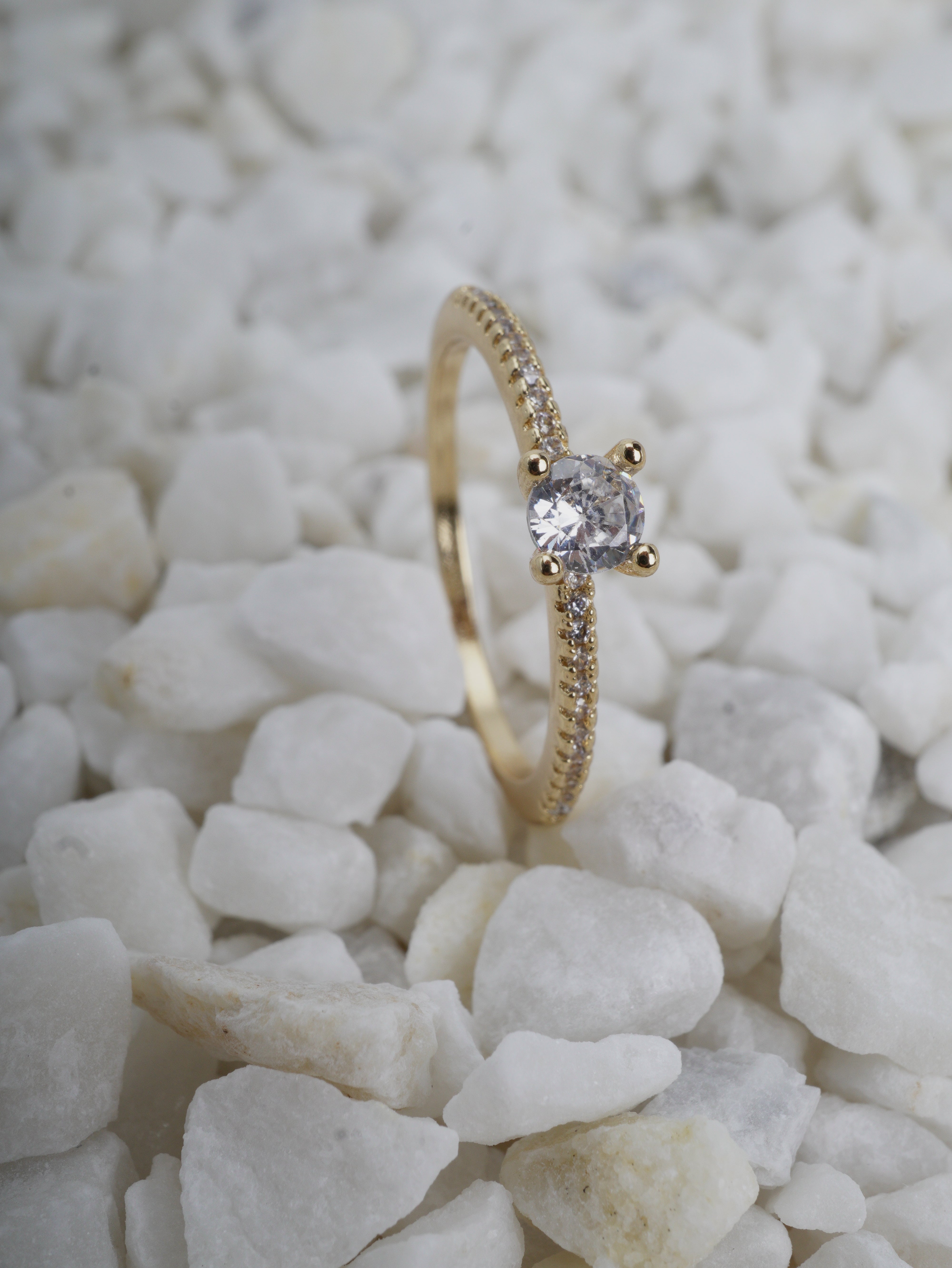ANILLO COMPROMISO CIRCON REDONDO LADO Y LADO MINI CIRCONES BLANCOS
