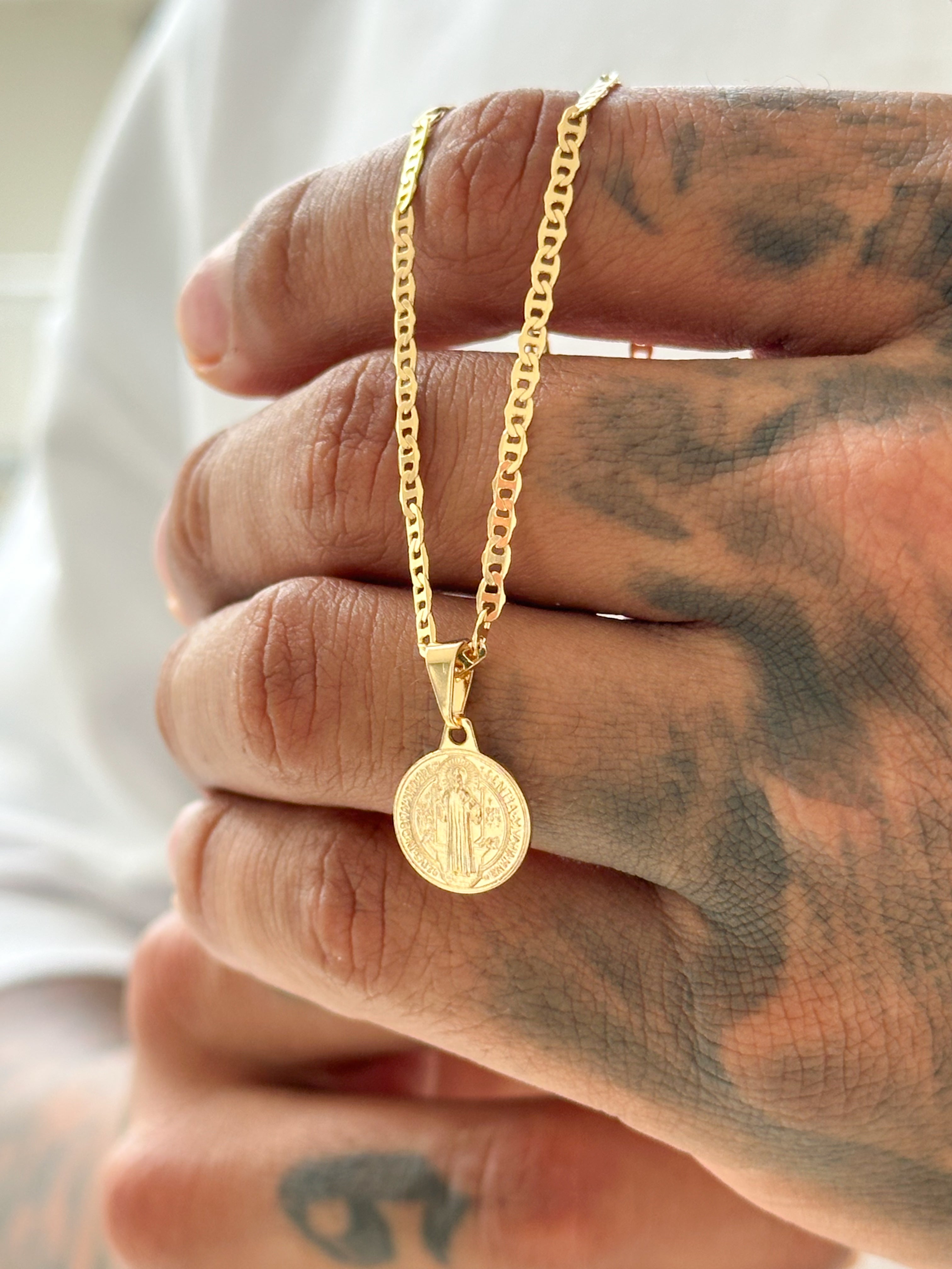 COMBO CADENA MINI-MILITAR + DIJE SAN BENITO